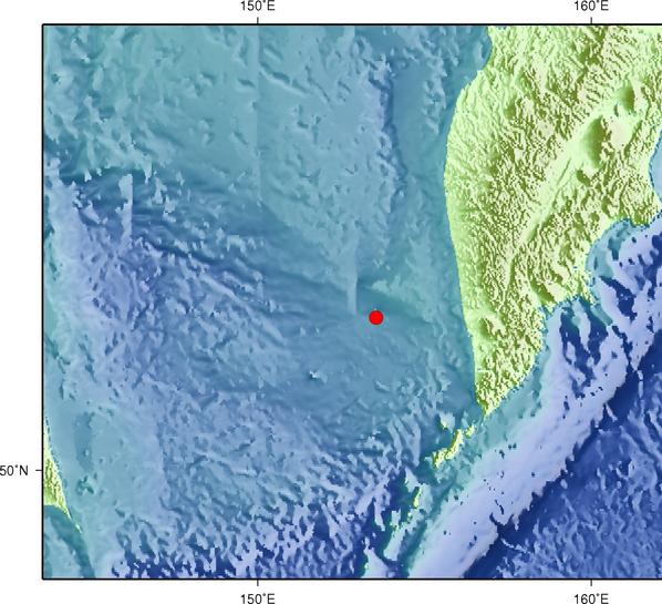 據(jù)中國(guó)地震臺(tái)網(wǎng)測(cè)定,北京時(shí)間 2018年10月13日19時(shí)10分在鄂霍次克海( 北緯52.85度, 東經(jīng)153.55度)發(fā)生6.6級(jí)地震,震源深度 470千米。